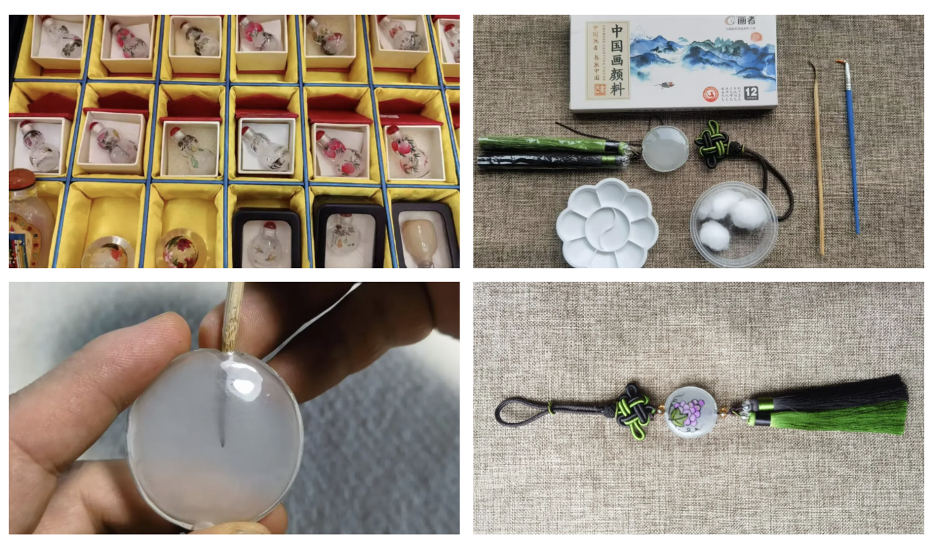 亲手制作一件内画葡萄鼻烟壶挂件。