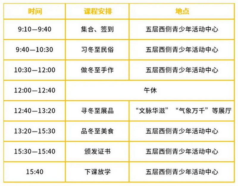 2024年,我馆共组织14期“应时循节学非遗:‘二十四节气’研学”活动,冬至篇为本年度最后一期活动,我们将为累计参加7次及以上的学员颁发“非遗传承小使者”证书并赠送礼品一份。