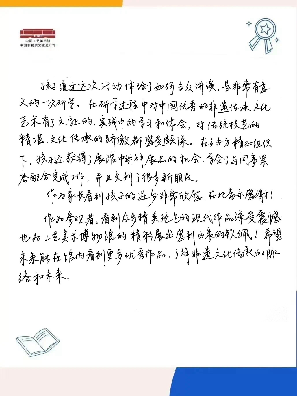 在往期“小小讲解员”培训课程中,学员们在与老师、观众的互动交流学习中,化身为传播中华文化的小使者,全面提升了社会交往、自主学习、语言表达、文字组织、待人接物五大能力。课程收获了家长们的一致好评: