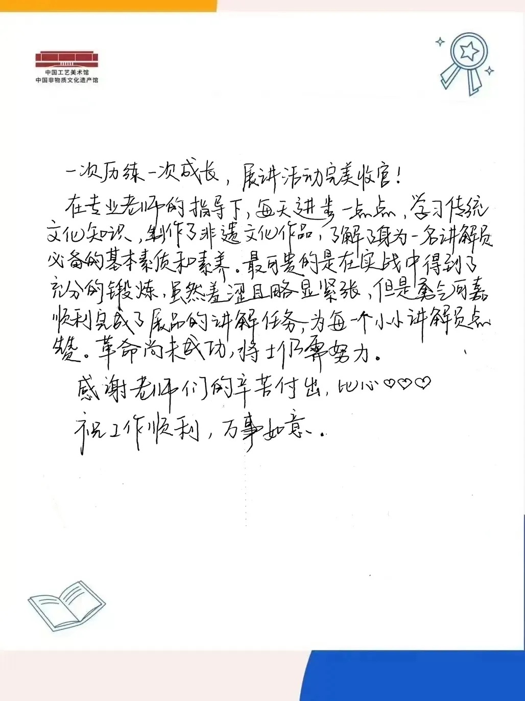 底气源自实践。站在展厅里,面对真实的展品和观众,因为亲手做过、用心感受过,分享非遗故事时,眼神更笃定、语气更自信,更能打动人心。