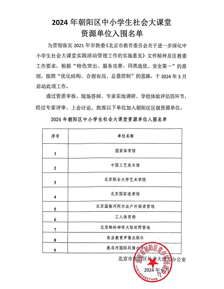 中国工艺美术馆 中国非物质文化遗产馆入围北京市朝阳区中小学生社会大课堂资源单位。