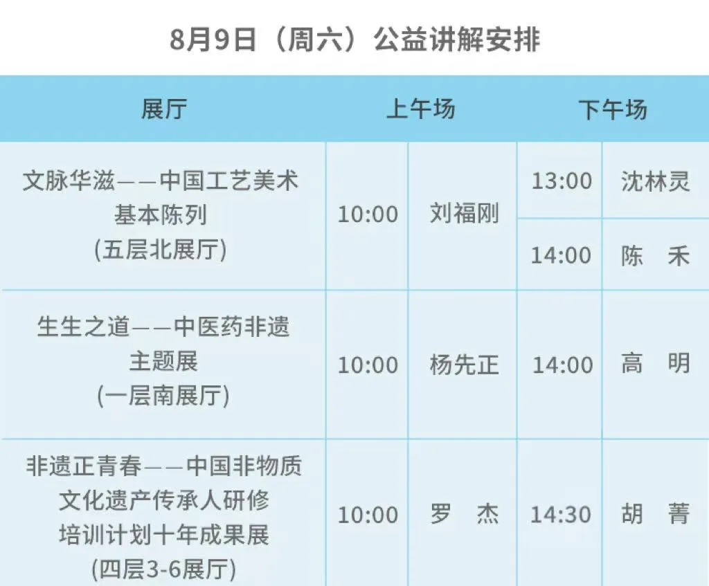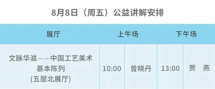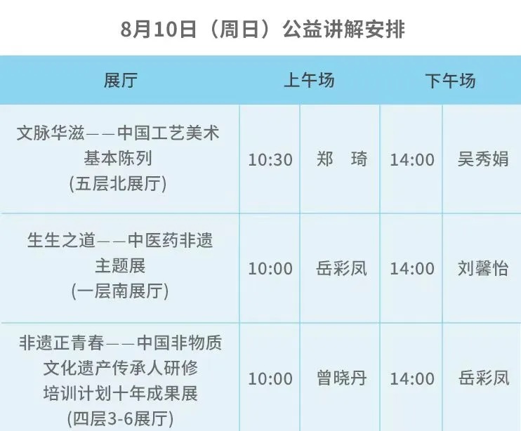 公益讲解 | 展厅公益讲解场次安排(8月7日-8月10日)