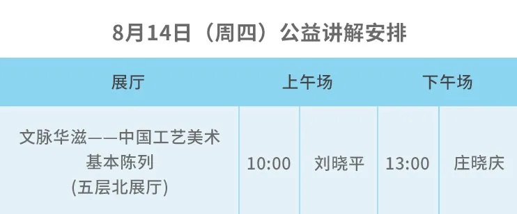 公益讲解 | 展厅公益讲解场次安排(8月14日-8月17日)