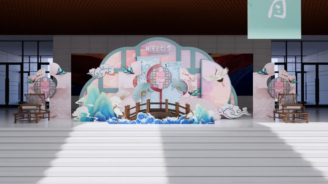 七夕当天,中央大厅将打造为浪漫的“鹊桥仙境”。牛郎、织女、月老等NPC们将身着传统服饰,通过沉浸式情景演绎,生动再现牛郎织女鹊桥相会的动人传说。演出间隙,观众还可与NPC们进行猜灯谜、对吟七夕诗词等互动活动。