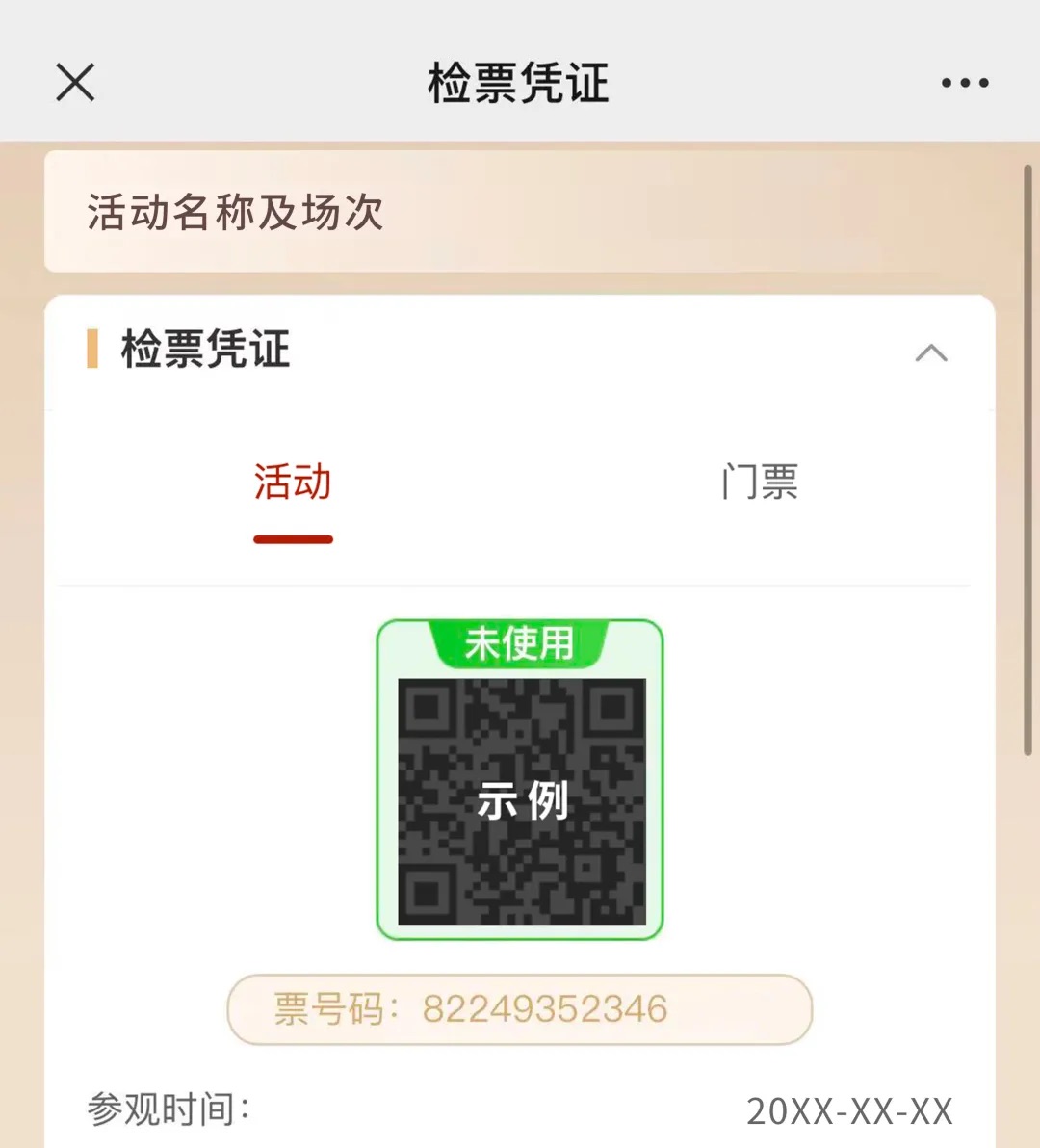 2.预订成功后将同时生成门票二维码和活动二维码,打开门票二维码或持本人身份证原件通过闸机入馆。