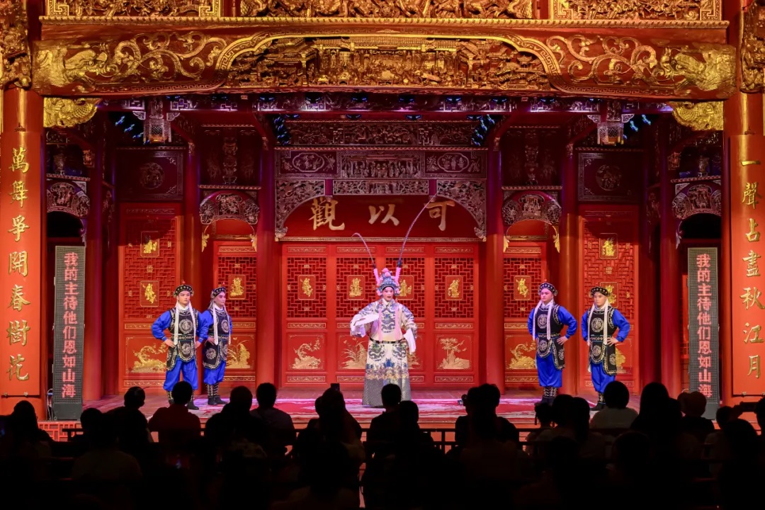 一旁的多功能厅内,“戏韵七夕”赣剧社教活动精彩上演,为节日增添了浓厚的戏曲风情。作为2011年列入第三批国家级非物质文化遗产代表性项目的赣剧,以激越明快的声腔、生动传神的表演著称。活动中,江西省乐平市赣剧团带来《陈姑赶船》《李迩王》《对花枪》等经典剧目,演员们唱腔婉转、身段优美,将传统戏剧的魅力展现得淋漓尽致。台下观众屏息倾听,不时为演员们的精彩表演报以热烈的掌声与喝彩声,现场戏曲氛围十分浓厚。