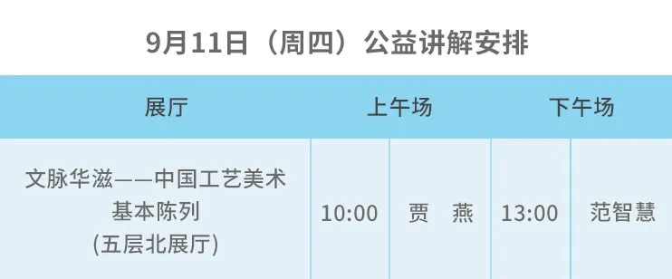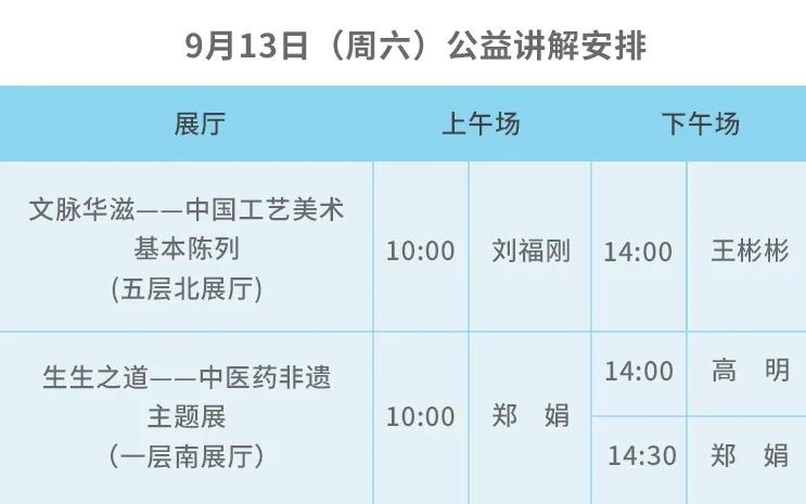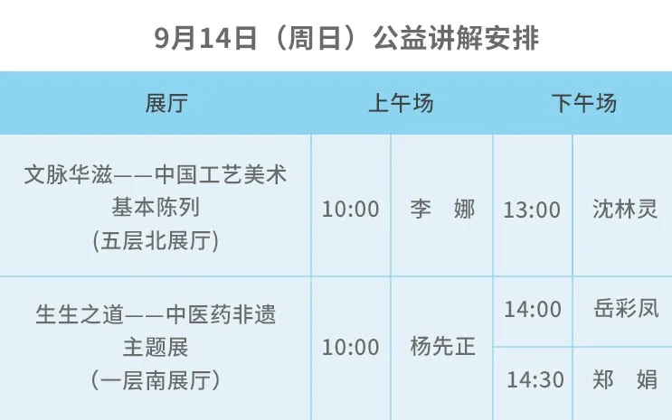 公益讲解 | 展厅公益讲解场次安排(9月11日-9月14日)