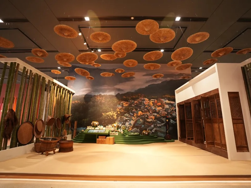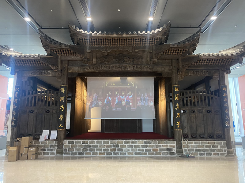 第二部分搭建了六个场景,传统表演艺术单元原貌呈现徽州地区的古戏楼,选取京剧、黄梅戏、昆曲等16个项目,通过戏曲名家现场展演和纱幕投影的形式,在戏台上轮番演绎戏曲经典片段,通过传统表演艺术非物质文化遗产的呈现,展示出中国传统文化中礼乐和合的精神境界和中华民族独特的文化底蕴;传统美术和传统技艺单元,展出刺绣、年画、石雕、木雕、营造技艺等60个项目,重点展示非遗项目的制作技艺,系统呈现从材料到成品的制作过程;传统制茶技艺单元展示了茶的种植场景、制作技艺、文化空间,以茶叙事、以茶述理、以茶论道。一杯中国茶,氤氲出中华文化的独特魅力中国茶不仅体现了中国人的气度,也承载了中华民族追求和谐、合和共生的价值观;民间文学和民俗单元,重点展出三大史诗、端午节等14个项目,表现非物质文化遗产在连结民族情感、维系国家统一方面发挥的重要作用。