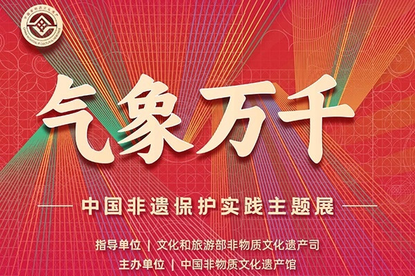 由文化和旅游部非物质文化遗产司指导,中国非物质文化遗产馆主办的《气象万千——中国非遗保护实践主题展》将于2024年6月7日在中国工艺美术馆 中国非物质文化遗产馆开展。共展出国家级非遗代表性项目、列入教科文组织非遗名录名册项目100余项,600多件(套)展品,涵盖非遗的十大门类。通过文字、图片、实物实景、多媒体互动,多角度立体展示形式,呈现非遗守正创新、继古开今的时代风貌。展览着重强调非遗的活态性和丰富性,深度挖掘展示非遗蕴含的文化内涵和时代价值,推动非遗融入当代生活。
