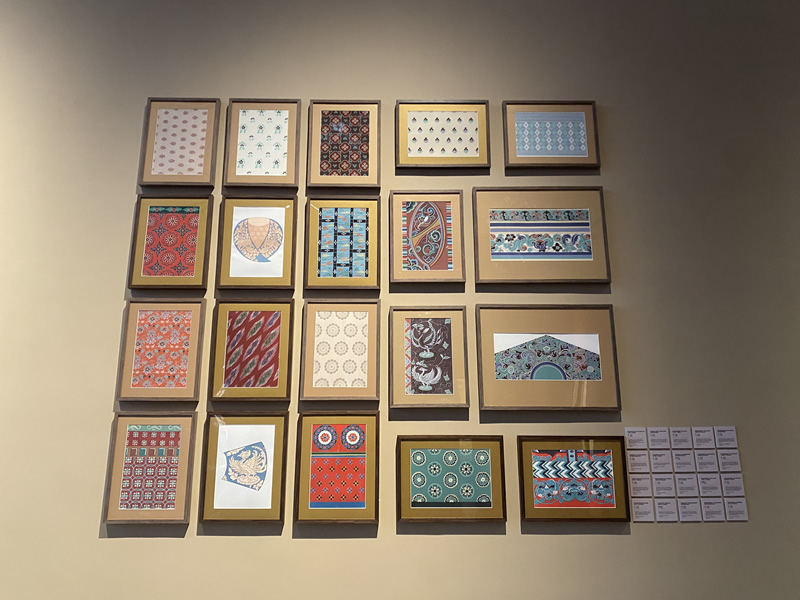 本次展览由我馆与敦煌研究院、北京服装学院三方联合主办。展览共分为“华服宝相”“翩如兰翠”“人间万象”“随色象类”“守正创新”和“似锦繁花”六个单元,展出了敦煌服饰文化研究暨创新设计中心团队七年的研究和创作成果,共计369件作品,是以敦煌石窟实地考察为基础,结合文献资料查证,根据敦煌壁画或彩塑图像整理绘制的人物服饰效果图和重点图案细节图,以及具有代表性的服饰艺术再现作品和创新设计作品。