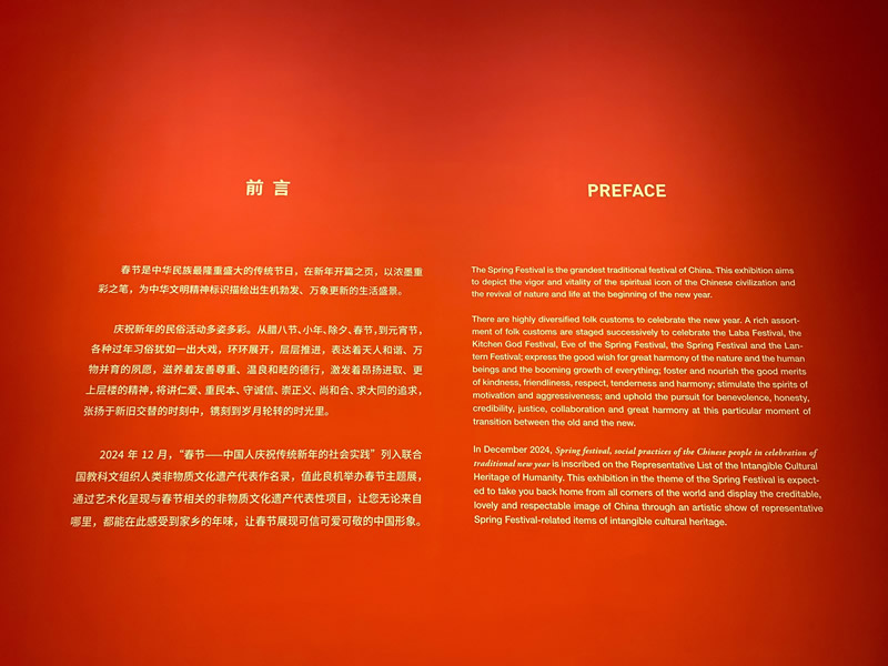 2024年12月,“春节——中国人庆祝传统新年的社会实践”列入联合国教科文组织人类非物质文化遗产代表作名录,值此举办春节主题展,通过艺术化呈现与春节相关的非物质文化遗产代表性项目,让您无论来自哪里,都能在此感受到家乡的年味,以春节展现出中华民族可信、可爱、可敬的形象。
