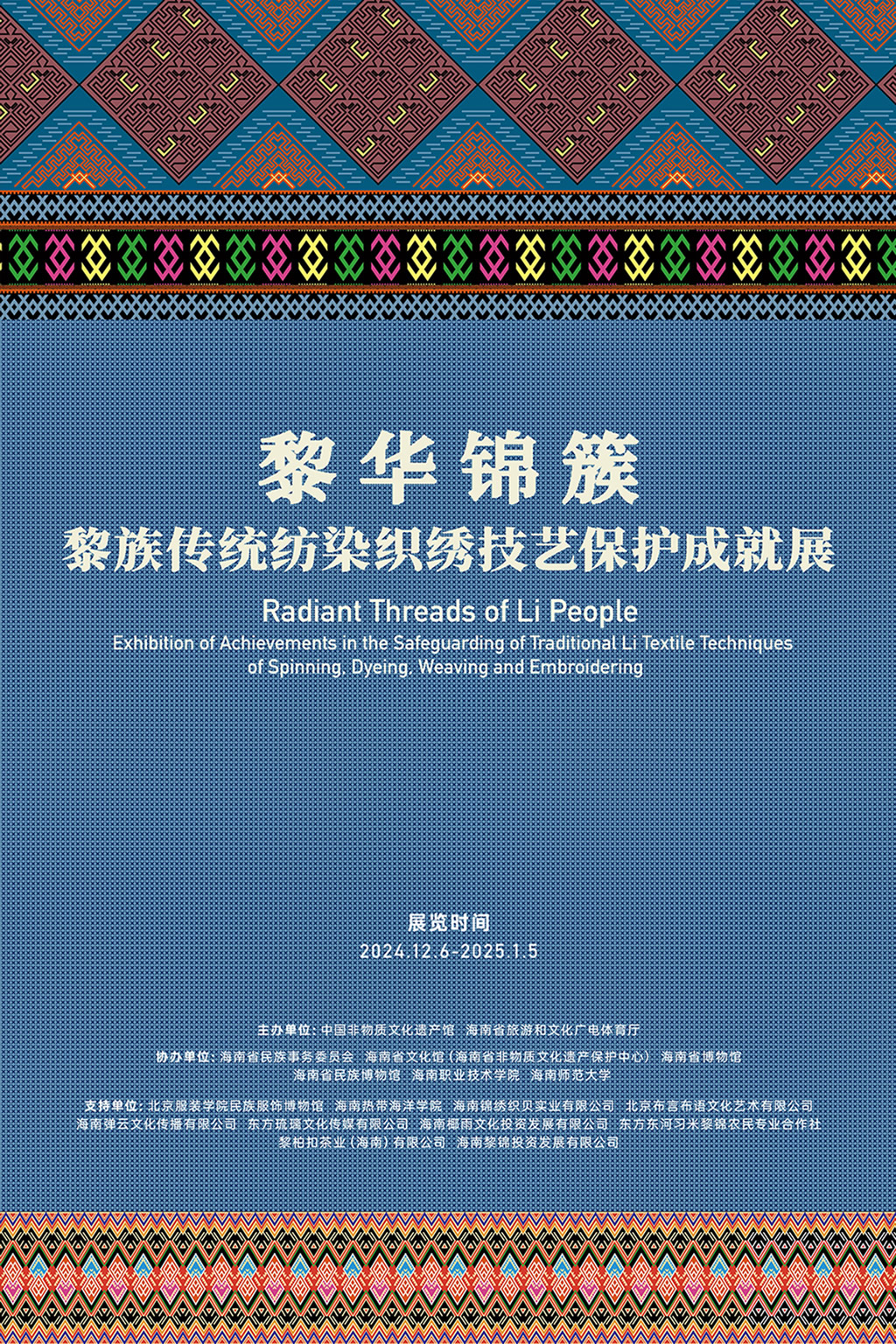 本次展览设“百卉千华”“经纬技忆”“握指成拳”“潮起海之南”四个单元,分别展示黎族传统纺染织绣技艺的历史脉络、技艺特点、保护实践和创新发展,呈现黎锦之美,展现海南省非遗保护成就,推动非遗在新时代创造性转化和创新性发展,不断焕发新活力、绽放新光彩。