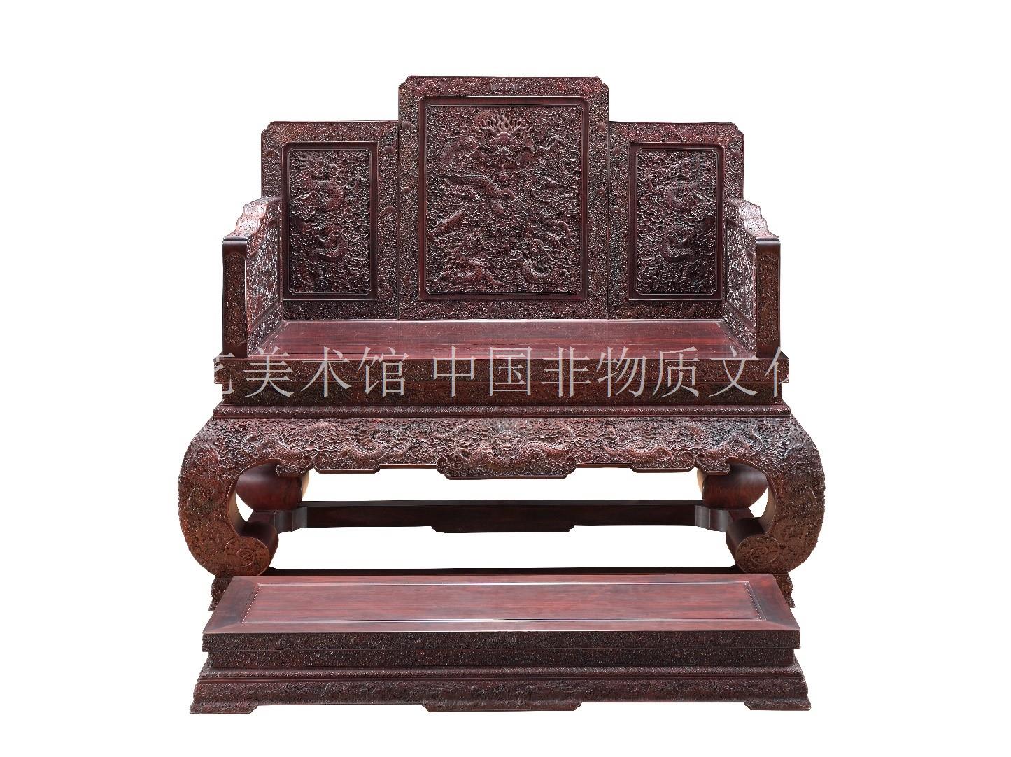 赞比亚紫檀嵌玉石 直棂格罗汉床