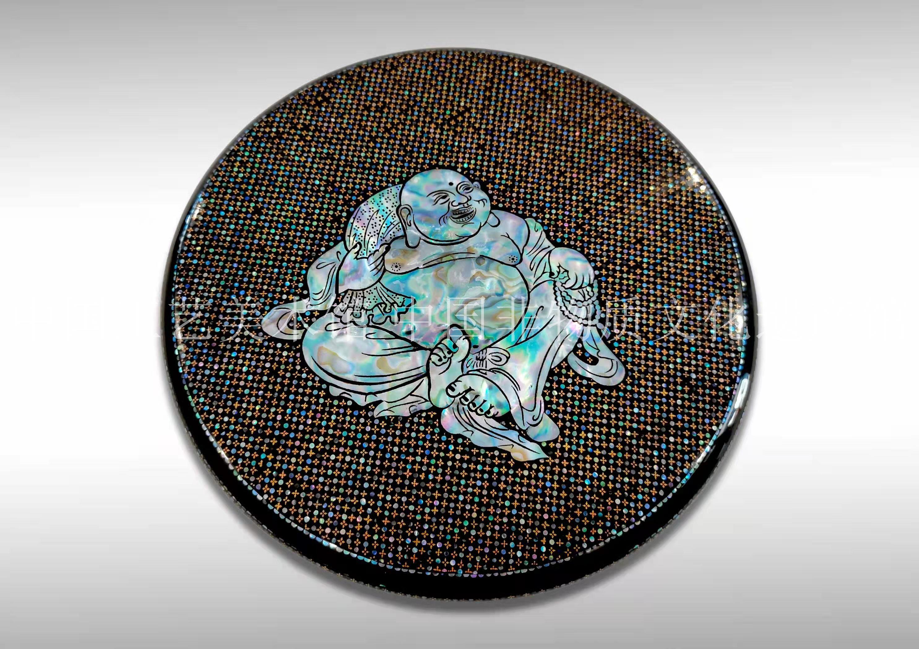 • 螺钿漆器 锦地纹弥勒佛圆盒