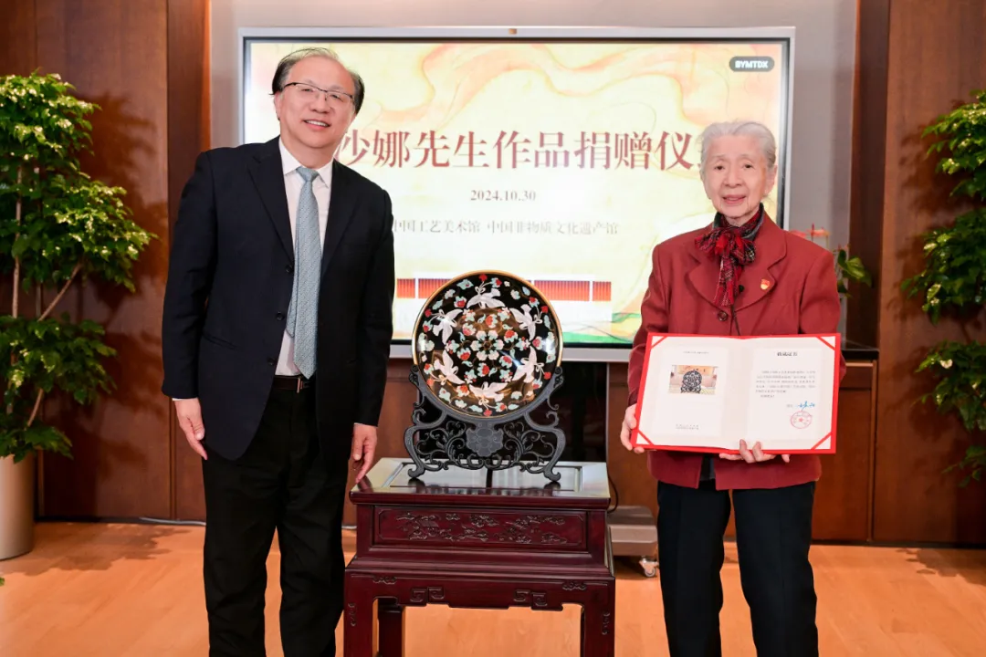 2024年10月30日下午,常沙娜作品捐赠仪式在我馆举行。中国工艺美术馆 中国非物质文化遗产馆党委书记王晨阳出席仪式并向常沙娜先生颁发收藏证书。捐赠仪式由中国工艺美术馆 中国非物质文化遗产馆副馆长王辉主持。