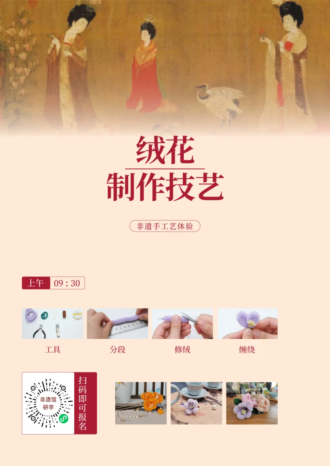 本课程中,观众将跟随老师的讲解,学习绒花制作的基础技法,亲手制作一枚精美的绒花作品,开启一场探寻绒花工艺魅力的旅程。
