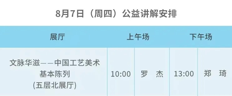 公益讲解 | 展厅公益讲解场次安排(8月7日-8月10日)
