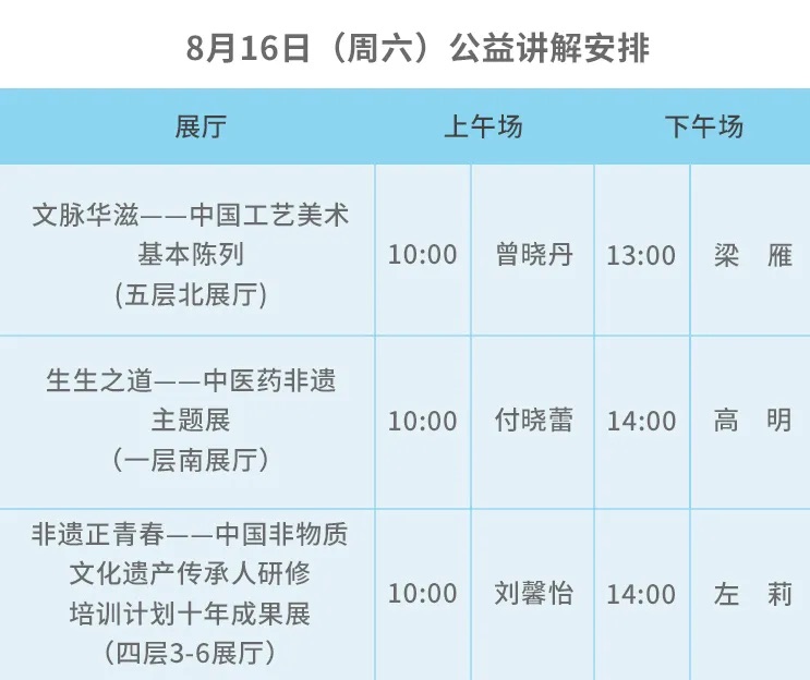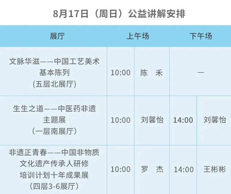 公益讲解 | 展厅公益讲解场次安排(8月14日-8月17日)