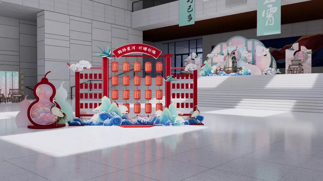 七夕当天,中央大厅将打造为浪漫的“鹊桥仙境”。牛郎、织女、月老等NPC们将身着传统服饰,通过沉浸式情景演绎,生动再现牛郎织女鹊桥相会的动人传说。演出间隙,观众还可与NPC们进行猜灯谜、对吟七夕诗词等互动活动。