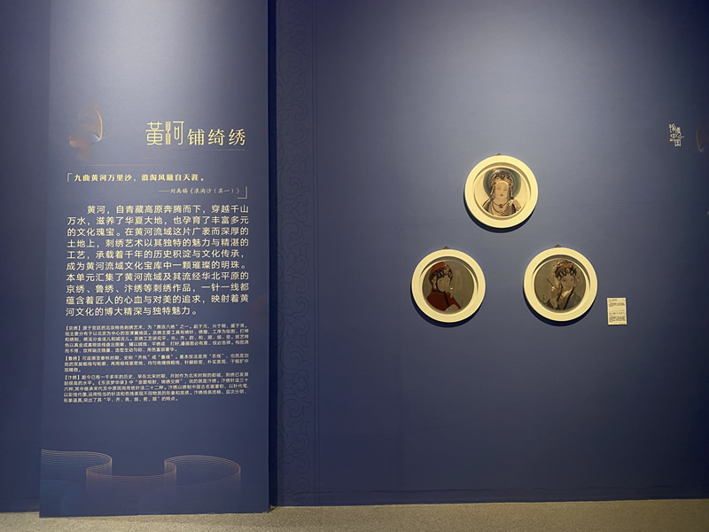 “锦绣中国——刺绣公共教育展”入选国家文物局、中央网信办主办的“2024 年度博物馆里读中国——弘扬中华优秀传统文化、培育社会主义核心价值观”主题展览推介项目。该展览汇集了全国多地区、多民族,具有代表性、典型性的刺绣作品在当代传承、创新、融合的优秀成果,分作“黄河铺绮绣”“长江驭锦鸾”“木棉绽粤江”“丹曦映北国”“鱼龙舞南溟”五大单元,系统展示出不同地域、不同时期代表性绣种的源起与流变,以作品结合工具、材料、文献、互动体验等方式进行展出,旨在生动、全面地呈现中国刺绣的发展脉络和当代面貌,揭示它独特的文化内涵、文化传统和艺术魅力,解读其所蕴含的中华民族传统美德。通过讲述中国刺绣所承载的中华民族多元一体的故事、赋能民族地区脱贫攻坚和乡村振兴的案例,相信刺绣也将在推进中国式现代化进程中续写新的辉煌。