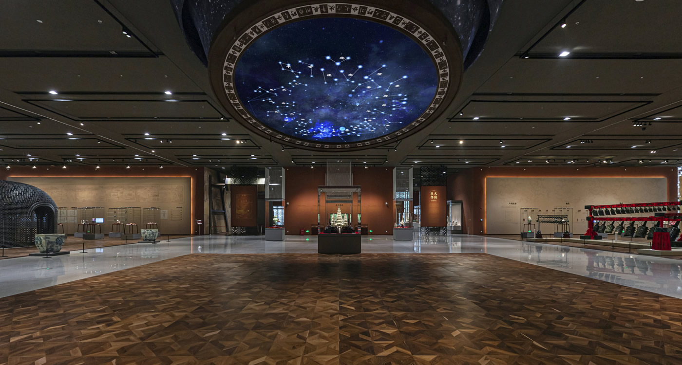 江河浩荡,山岳葱茏,孕育天地滋华变幻人间秀美;时运勃兴,人文昌盛,荟萃工艺厚朴再创造物神工。