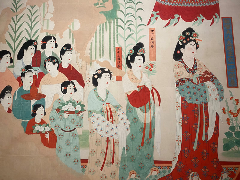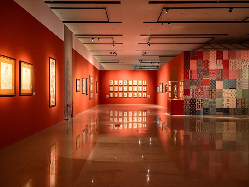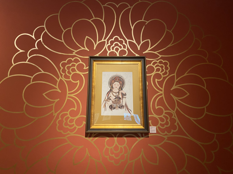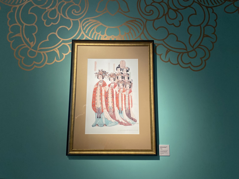 本次展览由我馆与敦煌研究院、北京服装学院三方联合主办。展览共分为“华服宝相”“翩如兰翠”“人间万象”“随色象类”“守正创新”和“似锦繁花”六个单元,展出了敦煌服饰文化研究暨创新设计中心团队七年的研究和创作成果,共计369件作品,是以敦煌石窟实地考察为基础,结合文献资料查证,根据敦煌壁画或彩塑图像整理绘制的人物服饰效果图和重点图案细节图,以及具有代表性的服饰艺术再现作品和创新设计作品。