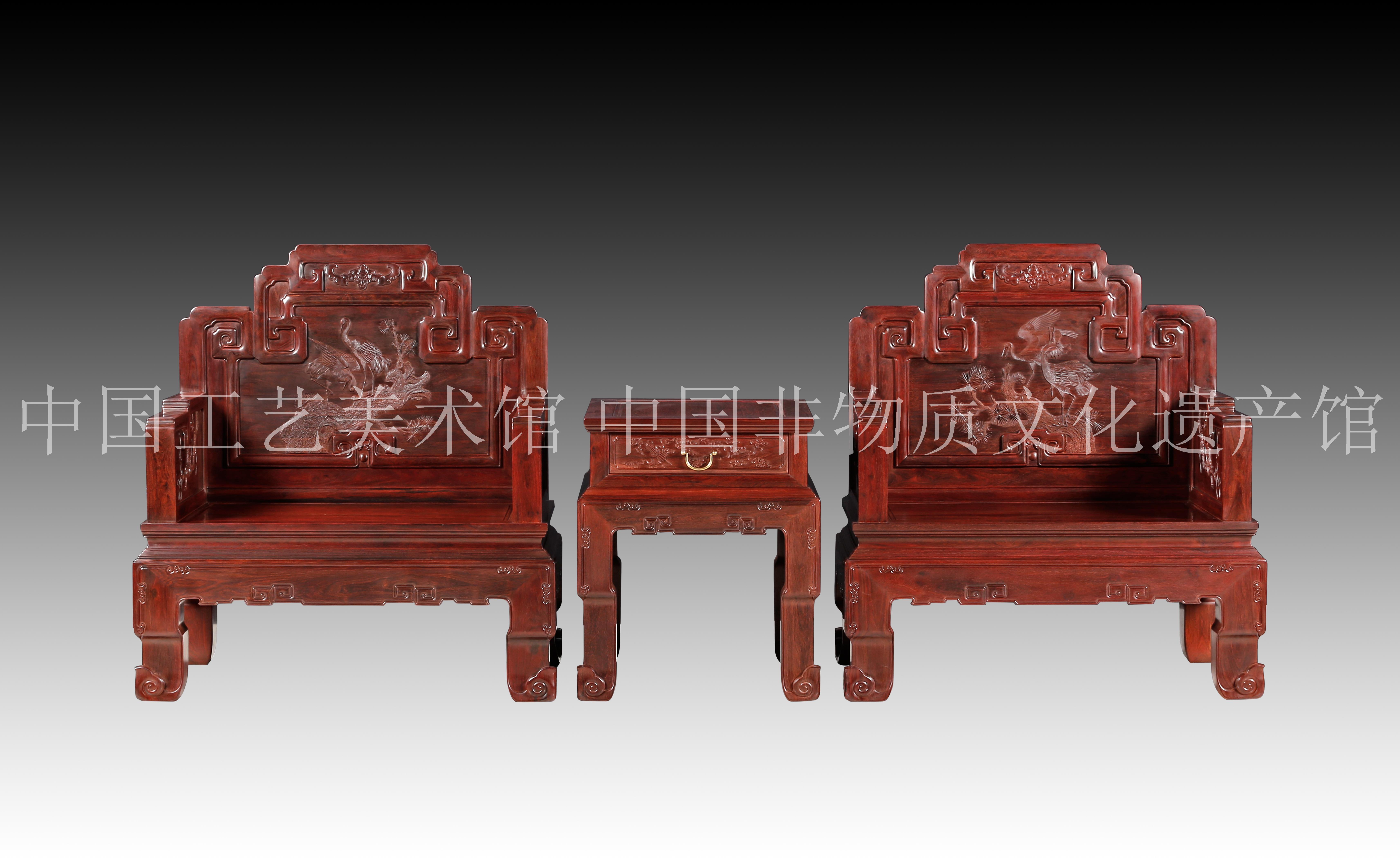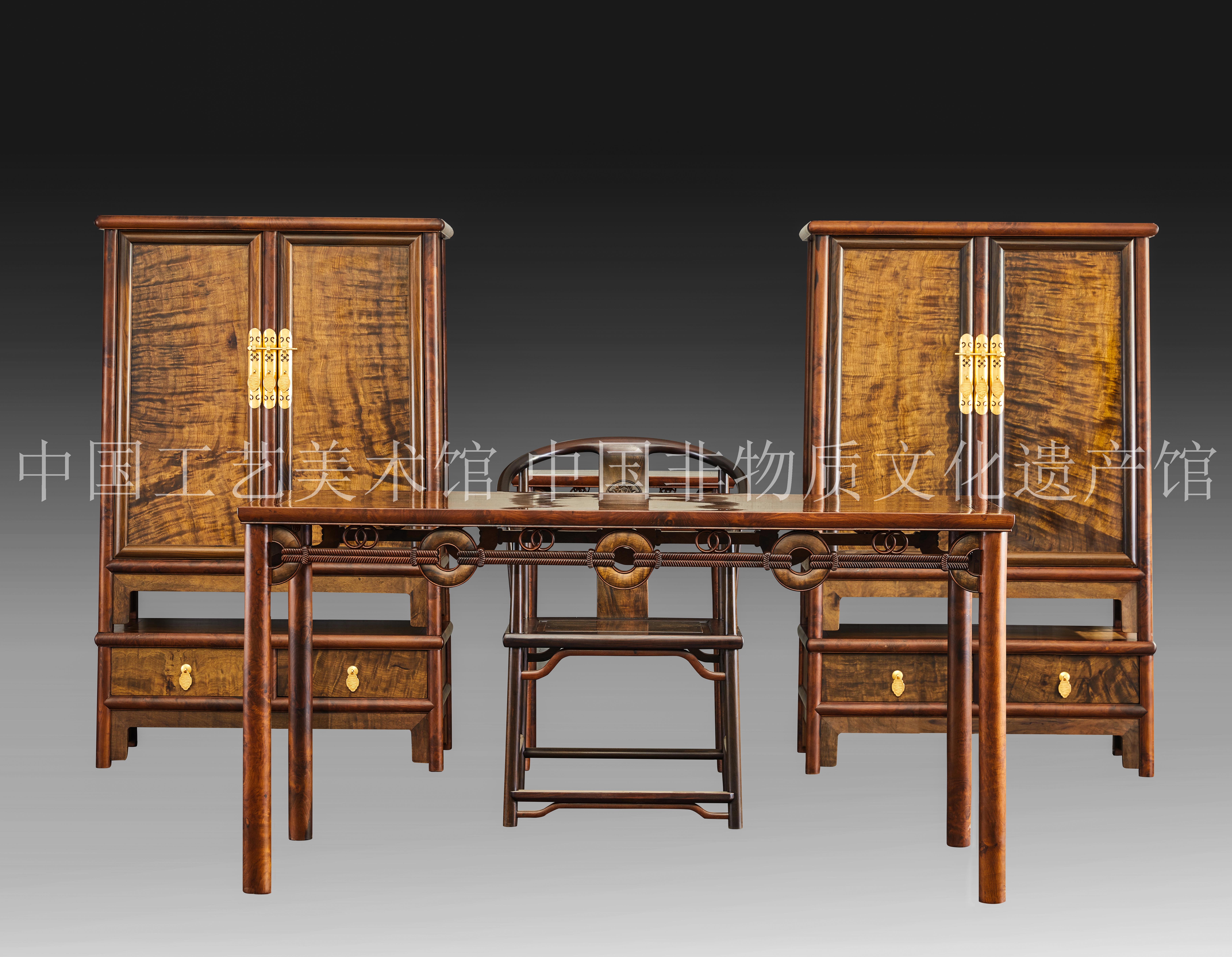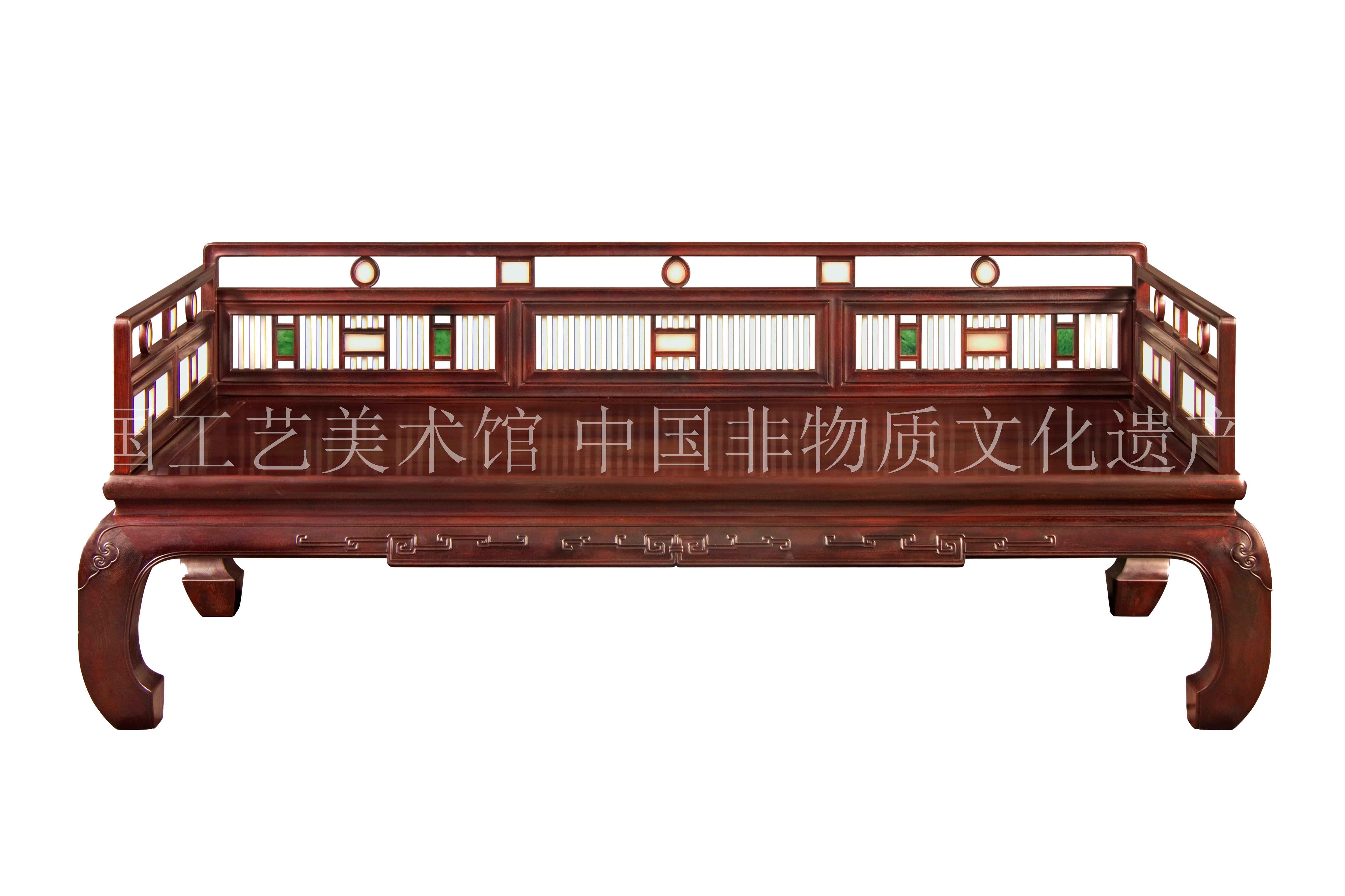 赞比亚紫檀嵌玉石 直棂格罗汉床