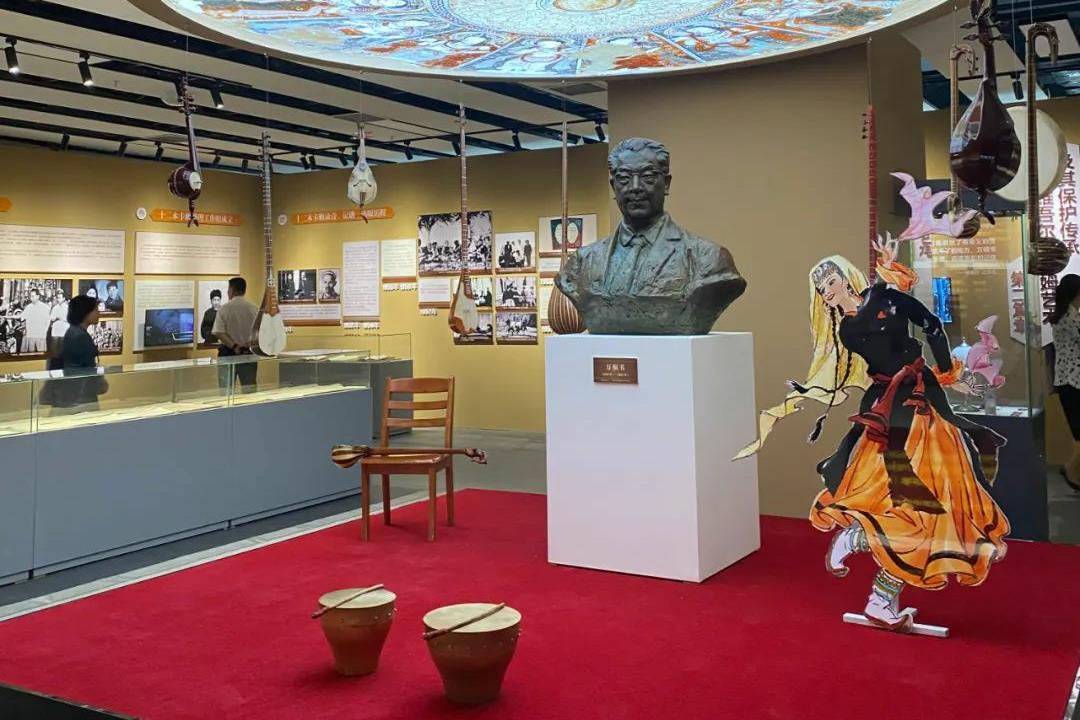 在新疆阿克苏市理工学院举办的“生命如歌——万桐书与新疆维吾尔木卡姆艺术”专题展作为2023年对口援疆19省市非物质文化遗产展的重点内容,选取一个崭新的展览视角,从保护者角度展示新疆维吾尔木卡姆这一人类非物质文化遗产代表作抢救传承保护的艰辛历程。